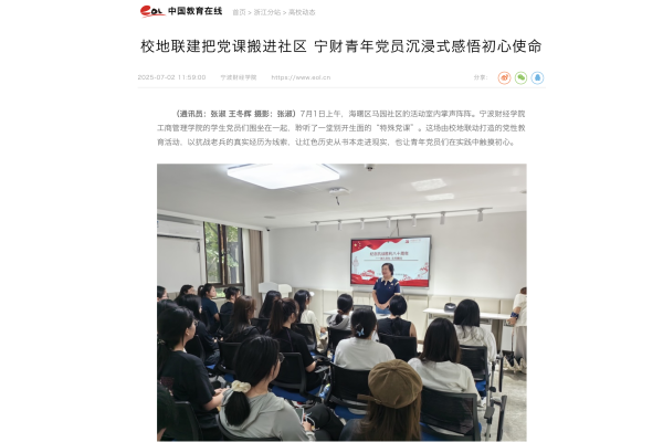 【中国教育在线】校地联建把党课搬进社区 宁财青年党员沉浸式感悟初心使命