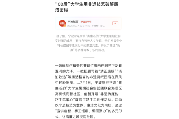 【界面新闻】“00后”大学生用非遗技艺破解廉洁密码