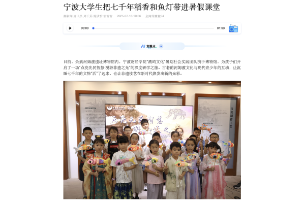 【潮新闻】宁波大学生把七千年稻香和鱼灯带进暑假课堂