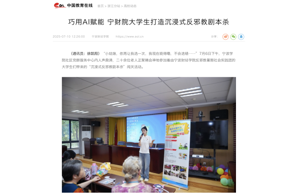 【中国教育在线】巧用AI赋能 宁财院大学生打造沉浸式反邪教剧本杀