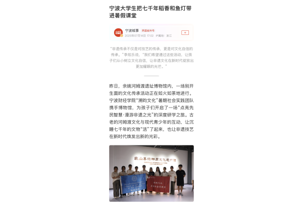 【界面新闻】宁波大学生把七千年稻香和鱼灯带进暑假课堂