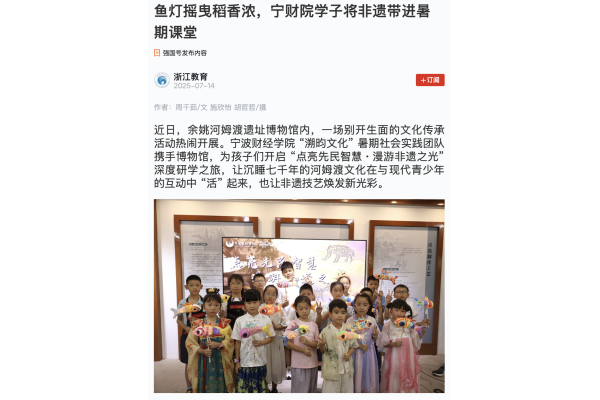 【学习强国·浙江教育平台】鱼灯摇曳稻香浓,宁财院学子将非遗带进暑期课堂
