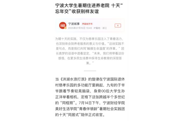 【界面新闻】宁波大学生暑期住进养老院 十天“忘年交”收获别样友谊