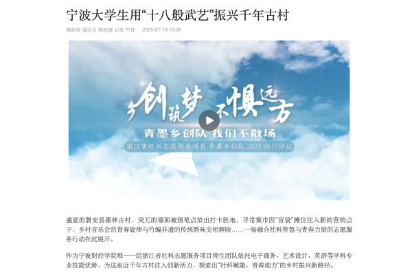 【潮新闻】宁波大学生用“十八般武艺”振兴千年古村