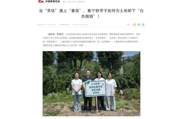 【中国教育在线】当“茶枯”遇上“番茄”,看宁财学子如何为土地卸下“白色枷锁”!