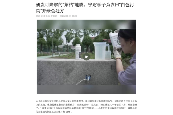 【潮新闻】研发可降解的“茶枯”地膜,宁财学子为农田“白色污染”开绿色处方