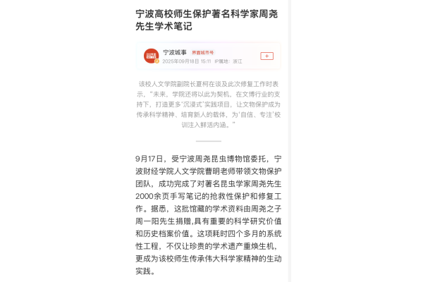 【界面新闻】宁波高校师生保护著名科学家周尧先生学术笔记