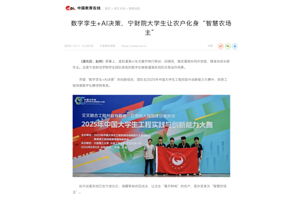 【中国教育在线】数字孪生+AI决策,宁财院大学生让农户化身“智慧农场主”
