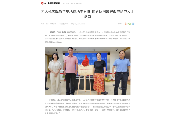 【中国教育在线】无人机实践教学基地落地宁财院 校企协同破解低空经济人才缺口