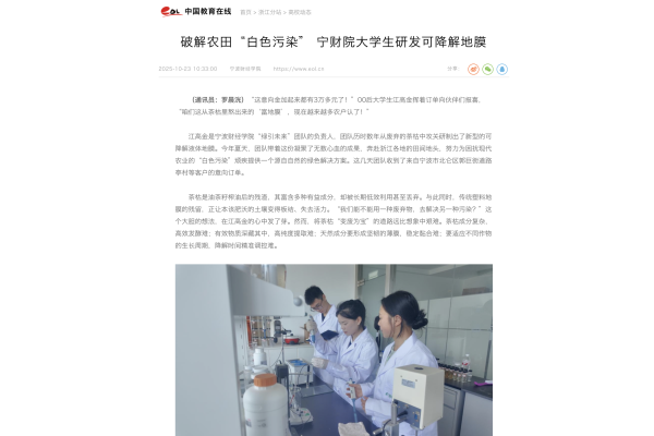 【中国教育在线】破解农田“白色污染” 宁财院大学生研发可降解地膜