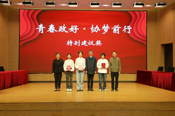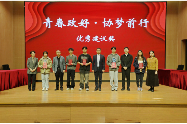 学校社情民意信息基地负责人介绍了本次模拟政协活动的开展情况,与会领导为3份“特别建议奖”和21份“优秀建议奖”的获奖同学颁发证书。