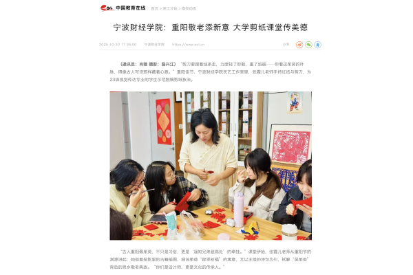 【中国教育在线】宁波财经学院:重阳敬老添新意 大学剪纸课堂传美德