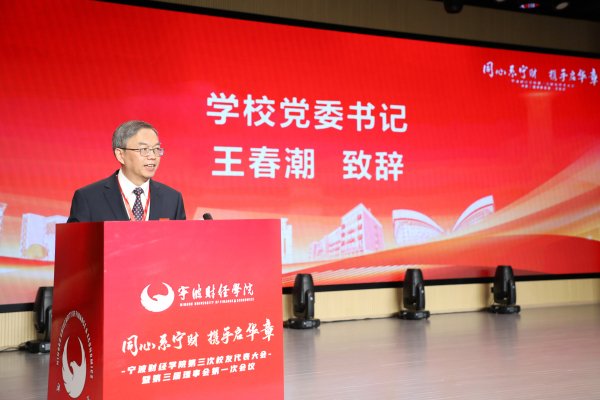 校党委书记王春潮在大会致辞中指出,校友是学校最靓丽的名片,是学校最宝贵的财富,更是学校“桃李不言,下自成蹊”最好的注脚。一届届宁财校友在各领域深耕不辍,是母校最宝贵的财富。他表示,母校永远是大家最温暖的港湾、最坚实的依靠、最坚强的后盾,欢迎大家常回家看看,多为母校发展建言献策、汇聚资源,与母校携手书写共生共荣的崭新篇章。