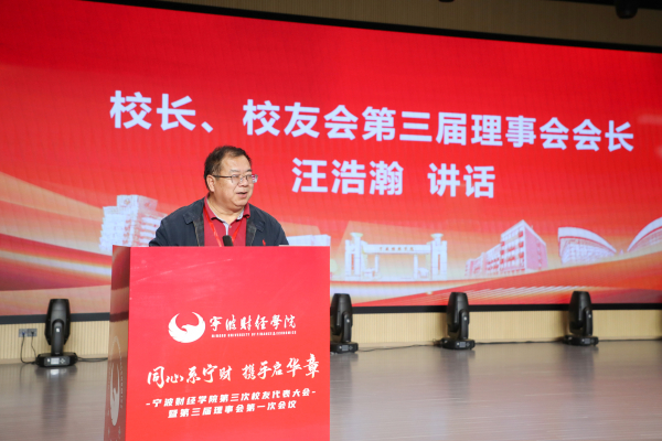 汪浩瀚在总结讲话中向新当选的第三届理事会成员表示诚挚祝贺,并肯定了过去几年校友会的工作成效。他指出,修订后的章程为新一届理事会工作提供了坚实制度遵循,标志着学校校友工作迈入新阶段。他强调,校友理事会是联结校友与母校的桥梁纽带,肩负着凝聚校友力量、支持母校发展、服务社会进步的重要使命。汪浩瀚向新任理事分享三点期望与共勉:一是要建强组织“主心骨”,筑牢联结纽带,完善组织架构与地方校友分会建设机制,构建情感相通、事业相融的发展共同体;二是要激活服务“动力源”,提升赋能实效,聚焦校友需求创新活动形式,推动校友间及校友与母校的深度互动;三是要唱响发展“同心曲”,凝聚奋进力量,推动校友工作与学校高质量发展同频共振,弘扬校训精神、讲好宁财故事。