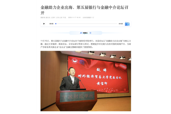 【潮新闻】金融助力企业出海,第五届银行与金融中介论坛召开