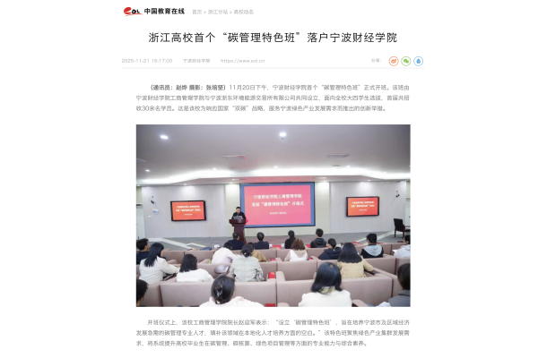 【中国教育在线】浙江高校首个“碳管理特色班”落户宁波财经学院