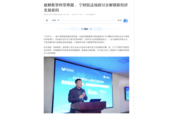 【潮新闻】破解数智转型难题 ,宁财院这场研讨会解锁新经济发展密码