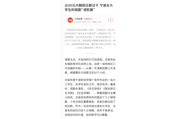 【界面新闻】从50元片酬到日薪过千 宁波女大学生的短剧“进阶路”