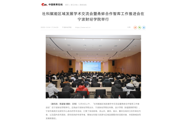 【中国教育在线】社科赋能区域发展学术交流会暨甬蚌合作智库工作推进会在宁波财经学院举行