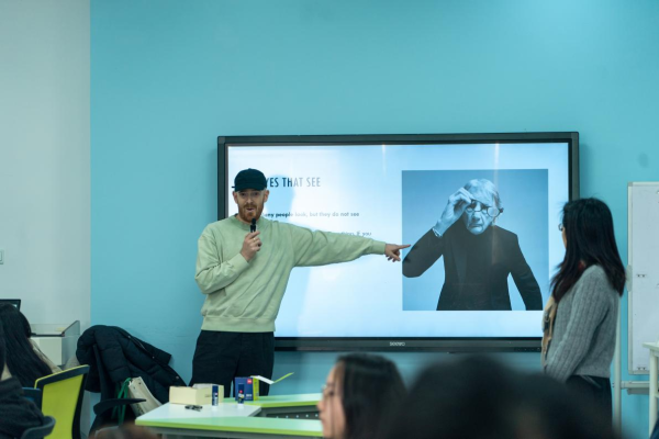 本次宣讲以沉浸式跨学科体验为特色,通过视觉观察与动手实践相结合的互动形式,直观展现交流项目的核心亮点——打破学科壁垒,让语言学习融入真实创作情境。王琦副院长参与课堂互动,与外籍教师及学生就作品的视觉表达、文化理解与语言阐释展开交流。现场氛围热烈,学生以简单创作任务为载体,在实践中尝试用英语沟通创意、阐释思路,提前感受了暑期交流项目中“语言+实践”的沉浸式学习氛围。