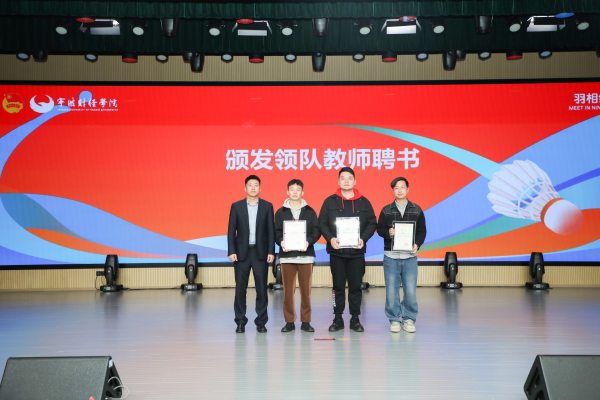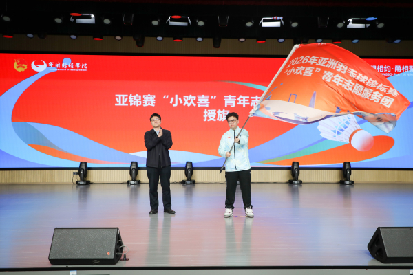 会上,包超杰为我校为“2026年亚洲羽毛球锦标赛‘小欢喜’青年志愿服务团”授旗。宁波奥体中心运营管理有限公司总经理徐驰为领队教师代表颁发聘书。