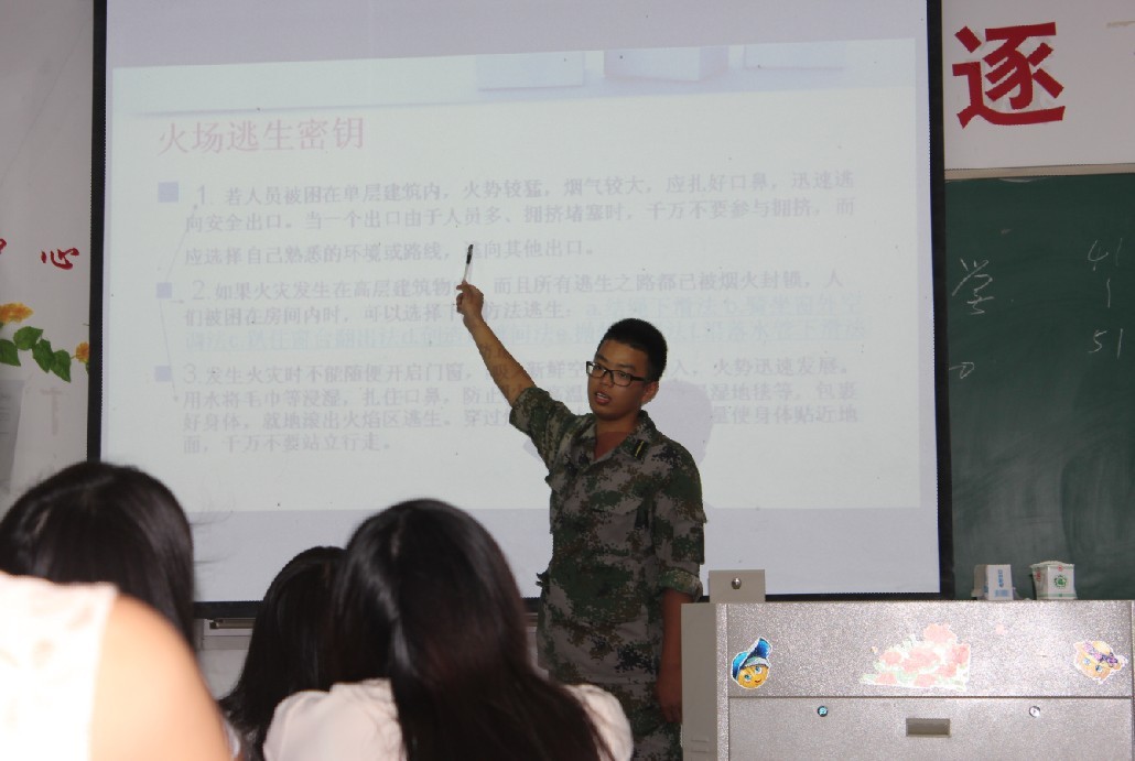 95晚,我校军训教导队成员对2012级全体本科学生进行了安全急救知识教育。他们通过自己所学的专业知识,为每位同学讲解并示范各个要领,包括心肺复苏等专业的急救技术。此外,我校军训教导队成员还对同学们进行了消防安全、地震逃生及防盗防骗等相关知识的教育。