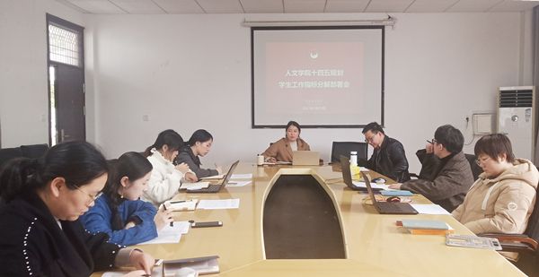 为深入学习贯彻党的十九届五中全会精神,落实部署校“十四五”事业发展规划任务要求,3月24日下午,人文学院召开“十四五”事业发展规划学生工作指标分解部署会。会议由人文学院党委副书记蒋珊珊主持召开,学院全体辅导员参加会议。