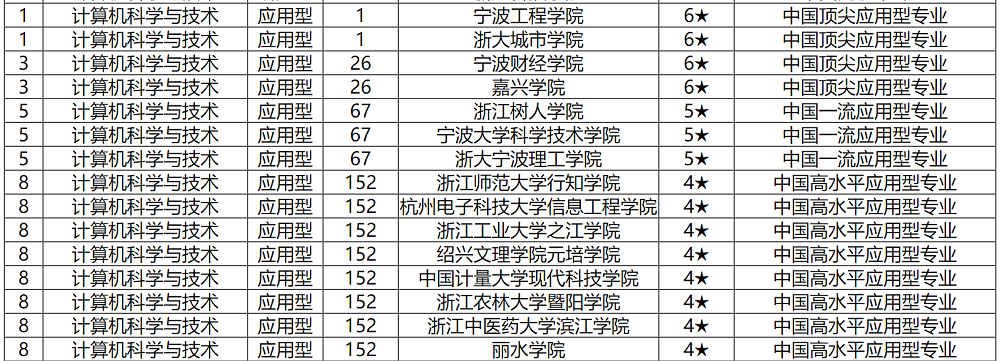 根据艾瑞深校友会网(Cuaa.Net)最新发布的2021校友会中国一流专业排名中,首次按照“研究型”和“应用型”对中国高校专业进行分类评价。在2021浙江省一流专业排名和2021浙江省各学科门类一流专业排名,浙江大学雄居2021浙江省一流专业排名(研究型)冠军。我院计算机科学与技术专业在2021浙江省一流专业排名(应用型)专业排名中获评6星级专业——中国顶尖应用型专业。