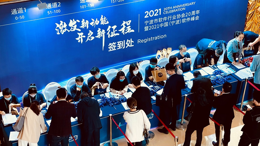 2021年10月24日,宁波市软件行业协会20周年暨2021中国(宁波)软件峰会在宁波国大雷迪森广场酒店举行,数工学院组织青年志愿者协助宁波市软件行业协会做好峰会志愿工作。