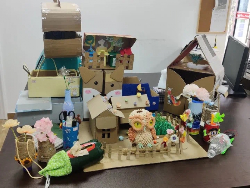 为了让同学们养成废物利用与节约资源的良好习惯,改变同学们头脑中传统的“资源→产品→垃圾”的思维模式,树立“资源-产品-垃圾-再资源化”的新理念,宁波财经学院象山影视学院公寓团工委举办了本次环保作品创意大赛。