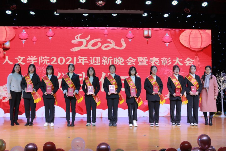 12月29日晚,人文学院2021年迎新晚会暨表彰大会在中区小剧场拉开帷幕,出席晚会的有人文学院的各位领导、各系部主任及各专业负责人,学院140余名同学参加了此次晚会。