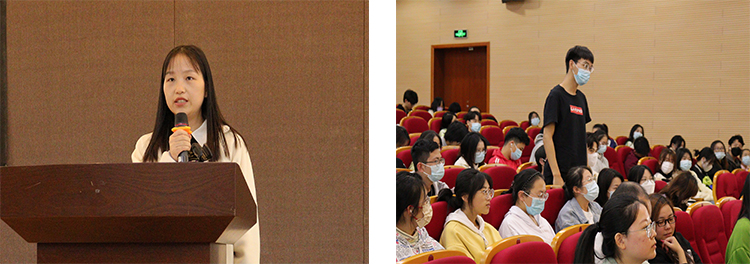 开幕式正式开始,首先由图书馆董瑜老师上台宣读聘任在2020——2021年该活动中推选出的7名校园阅读推广人文件,并由请国际经济贸易学院陈安楠老师与董瑜老师一起为七位同学颁发聘书。接着,主持人宣读了七位阅读推广人的分组信息。腹有诗书气自华,张营营老师慷慨激昂的动员发言,赢得了同学们热烈的掌声。而后,梁莹老师进行了上台发言,对同学们提出了三点建议:一是养成爱读书的习惯;二是持之以恒,倡导终生读书;三是多参加读书活动。梁老师的一番话如醍醐灌顶点燃了同学们的读书热情。最后,超星集团浙江分公司资深培训讲师给大家进行学习通APP培训讲座,助力同学们更好地打开阅读的大门。