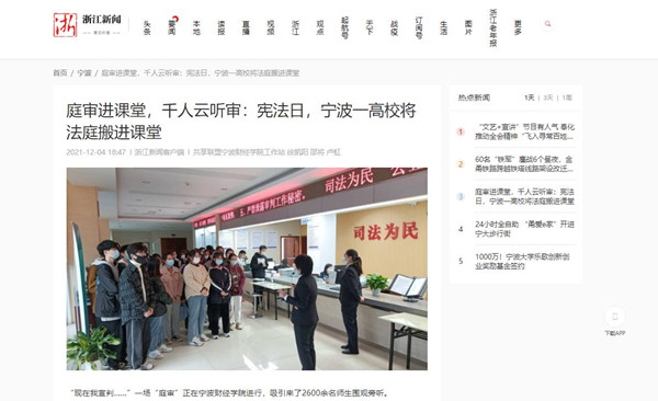 【浙江新闻】庭审进课堂,千人云听审:宪法日,宁财院将法庭搬进课堂