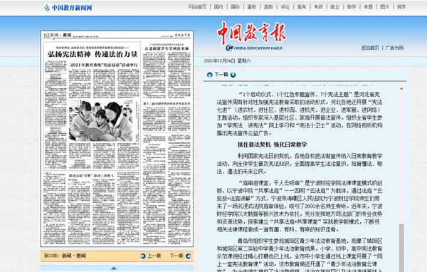 【中国教育报】宁波财经学院抓住普法契机 强化日常教学