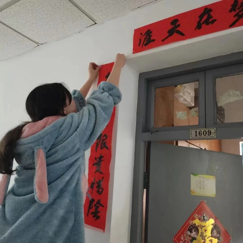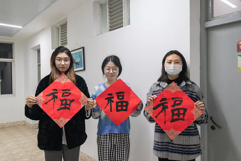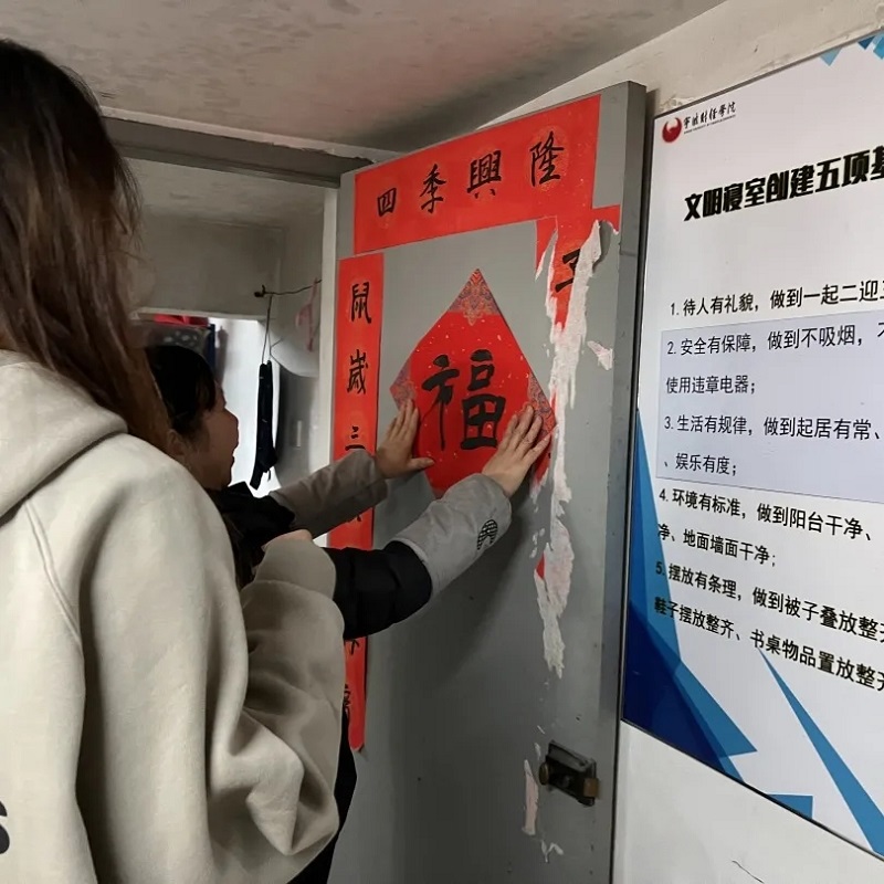 之后,艺术设计学院学生会代表全院同学将师生们亲手书写的福字送给宿管科阿姨、食堂阿姨、保卫叔叔等,他们还与叔叔阿姨们一起张贴春联、福字,表达了对这些平凡岗位上辛苦工作的工作人员的敬意。