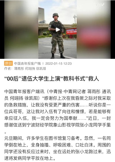 【中国青年报客户端】宁财院“00后”退伍大学生上演“教科书式”救人