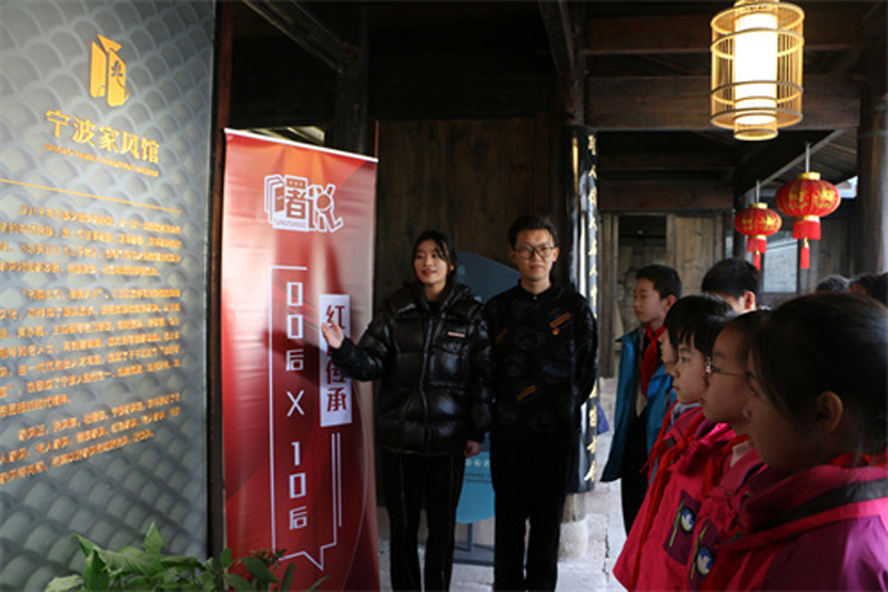 11月30日,在宁波市高等学校思想政治教育研究会、海曙区新时代理论宣讲工作室和宁波财经学院教育发展基金会支持与组织下,宁波实验小学的学生们前来参加“共育赓续力量 共守红色根脉”思政实践教育创新课程,而年轻的宣讲员,则是来自宁波财经学院的00后宣讲团的大学生们,此团队由宁波财经学院马克思主义学院副院长姜帆老师带队,这支团队把课堂搬到了宁波家风馆,大学生们变身“思政老师”,给小学生们带来了一趟生动的红色教育课。