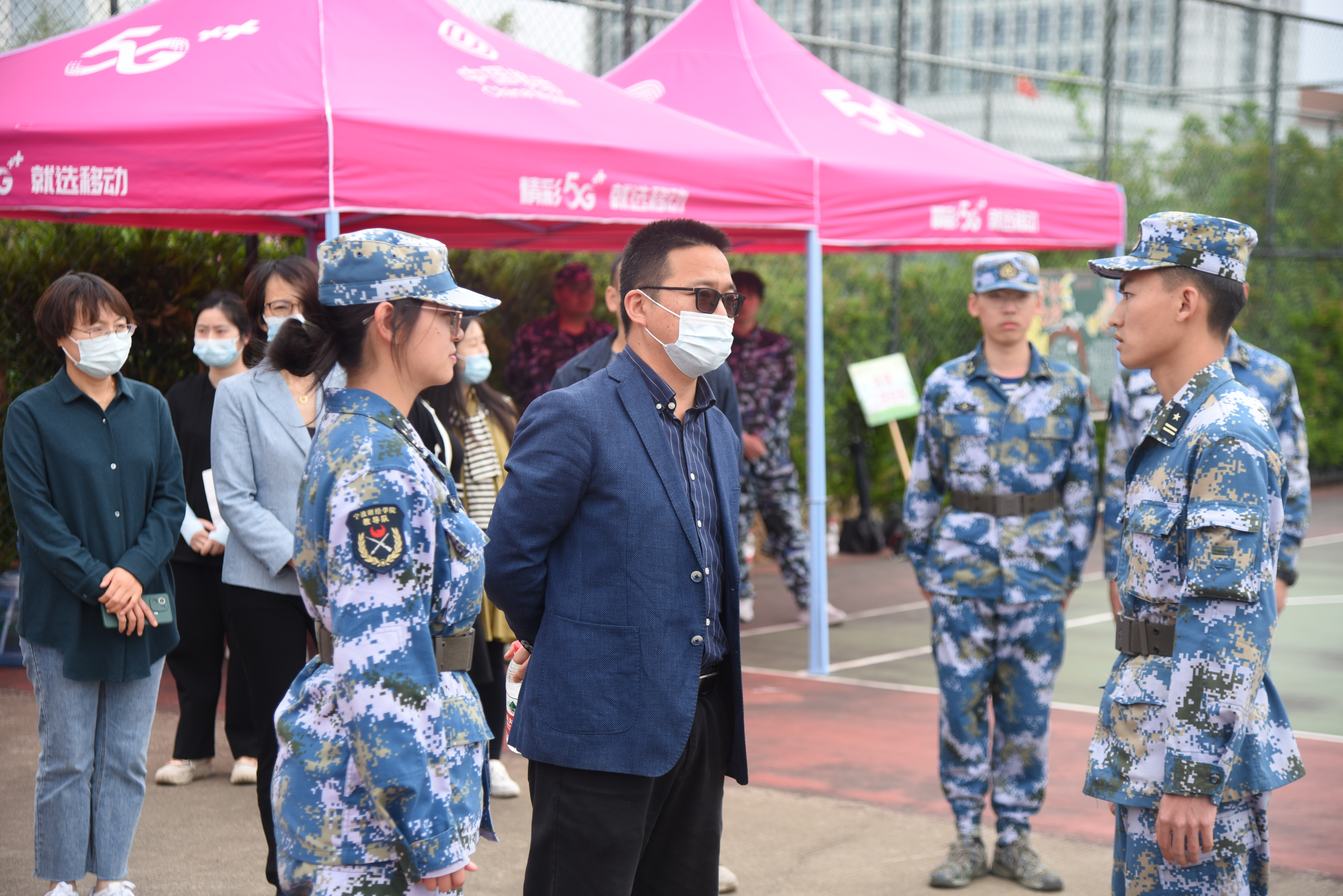 5月10日上午,国际经济贸易学院院长王瑞、党委书记卢虹、副院长魏麒、郝新蓉来到杭州湾校区军训现场,检查我院2020级学生军训工作,看望慰问军训教官、学生和辅导员。