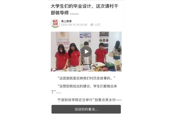 【宁波晚报·甬上客户端】宁波财经学院:大学生们的毕业设计,这次请村干部做导师