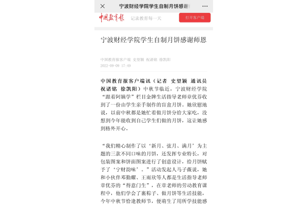 【中国教育报客户端】宁波财经学院学生自制月饼感谢师恩