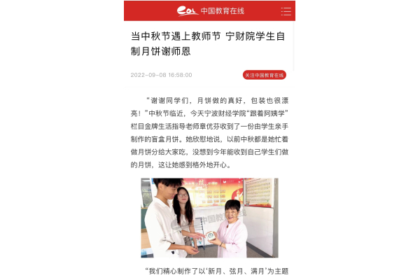 【中国教育在线】当中秋节遇上教师节 宁财院学生自制月饼谢师恩