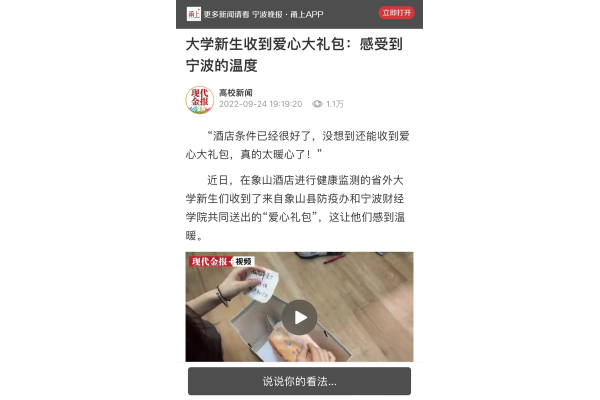 【宁波晚报·甬上客户端】宁财院大学新生收到爱心大礼包:感受到宁波的温度