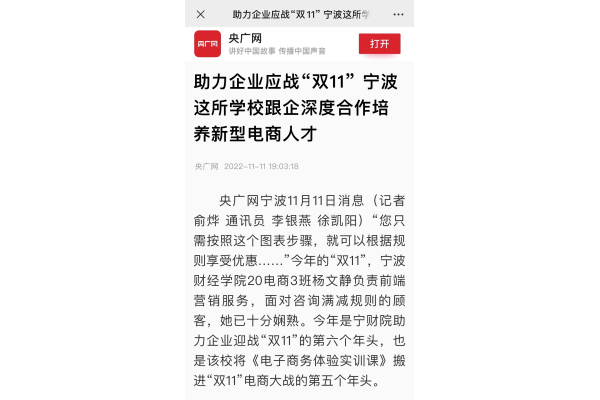 【央广网】助力企业应战“双11” 宁财院跟企深度合作培养新型电商人才