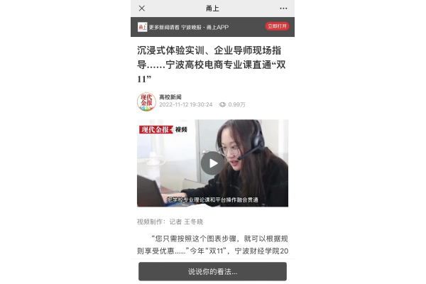 【宁波晚报·甬上客户端】沉浸式体验实训、企业导师现场指导……宁财院电商专业课直通“双11”