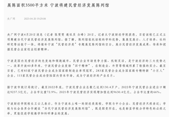 【央广网】展陈面积3500平方米 宁财院将建民营经济发展陈列馆