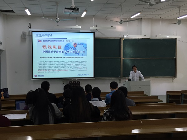 2014年11月5日下午1:30,信达期货有限公司在我校9号教学楼102室举行招聘宣讲会,大宗商品商学院2011级即将实习的学生参加了此次宣讲会。