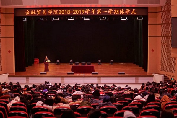 2019年1月3日下午,我院2018-2019学年第一学期休学式在杭州湾校区大礼堂隆重举行。此次休学式由学工办副主任张营营主持,学院党委书记卢虹及我院杭州湾校区全体辅导员出席,学院大一、大二全体学生参加。