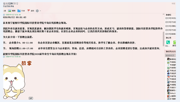 截止目前,双方有意向的企业与学生正在积极沟通中。在线招聘的形式缩短了直接沟通的各类事项,企业与学生双方都充分认可在线形式,给予好评。