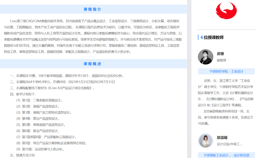 三、本课程配套线下教材为《Creo 8.0产品设计项目式教程》。