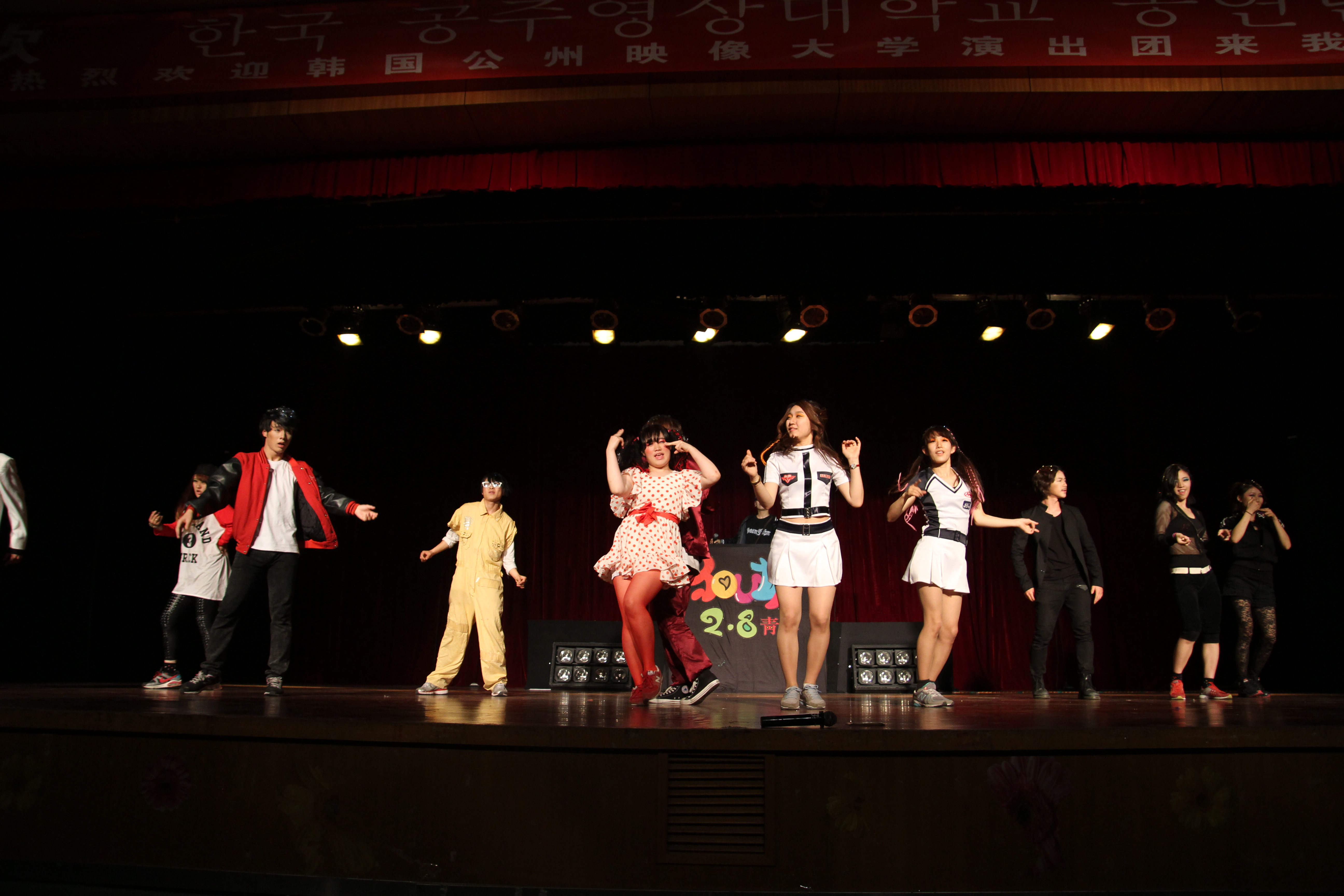 据了解,《春香传》是韩国家喻户晓的古典文学作品,描写了青春男女美好的爱情故事。韩国公州映像大学活动编导系在传统文学《春香传》的基础上融入现代元素,创作了青春偶像歌舞版的实践性公演作品——《Youth2.8青春》。《Youth2.8青春》以“韩流”风格的音乐舞蹈为表现手段,表现了新一代青年文化。本次演出在绚丽的舞蹈和热烈的掌声中拉下帷幕。